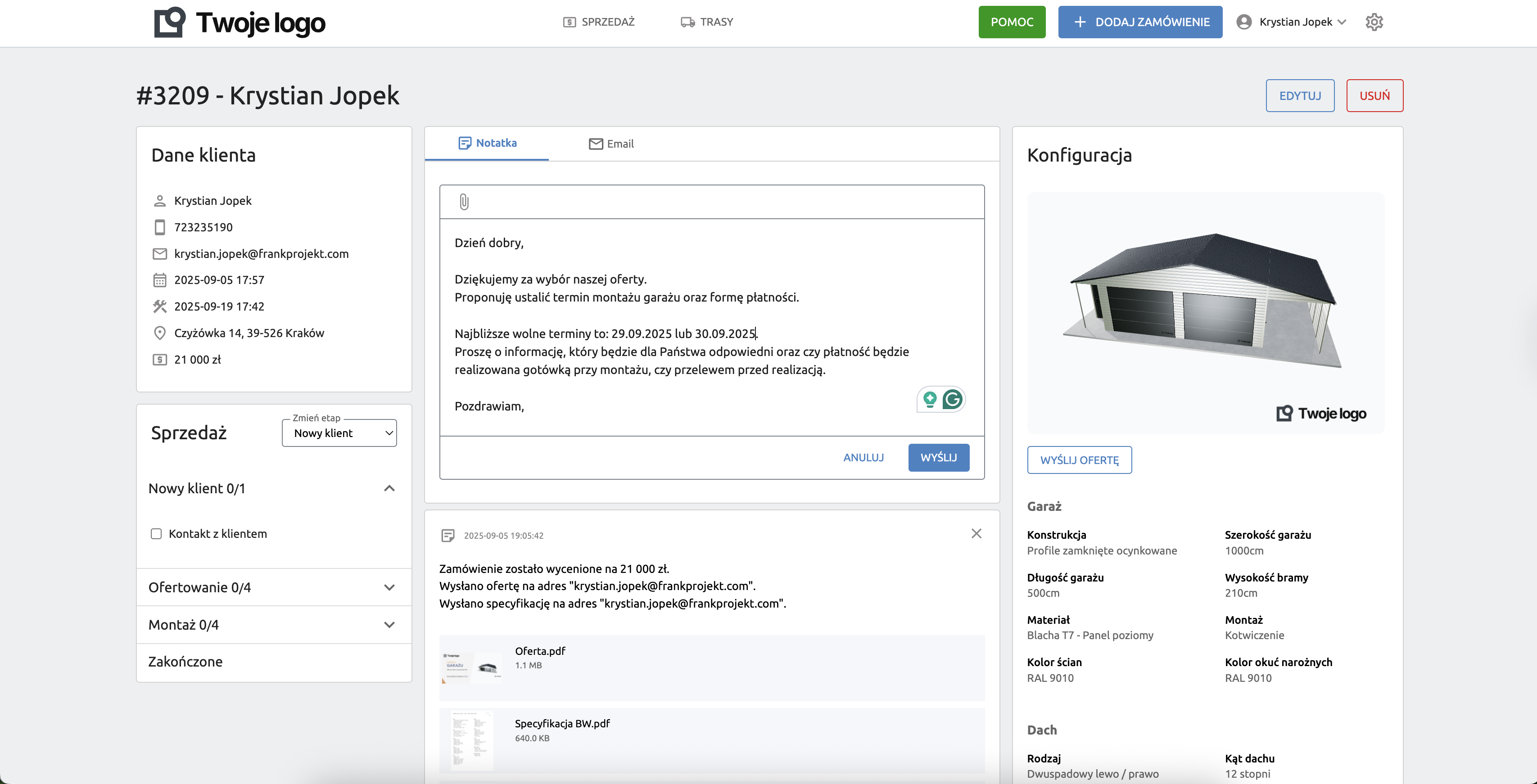 Skorzystaj z Konfiguratora Garaży i wielu innych systemów wspierających proces sprzedaży - od pozyskania klienta aż po montaż. Rozliczaj się na swoich zasadach i rozwijaj swój biznes.